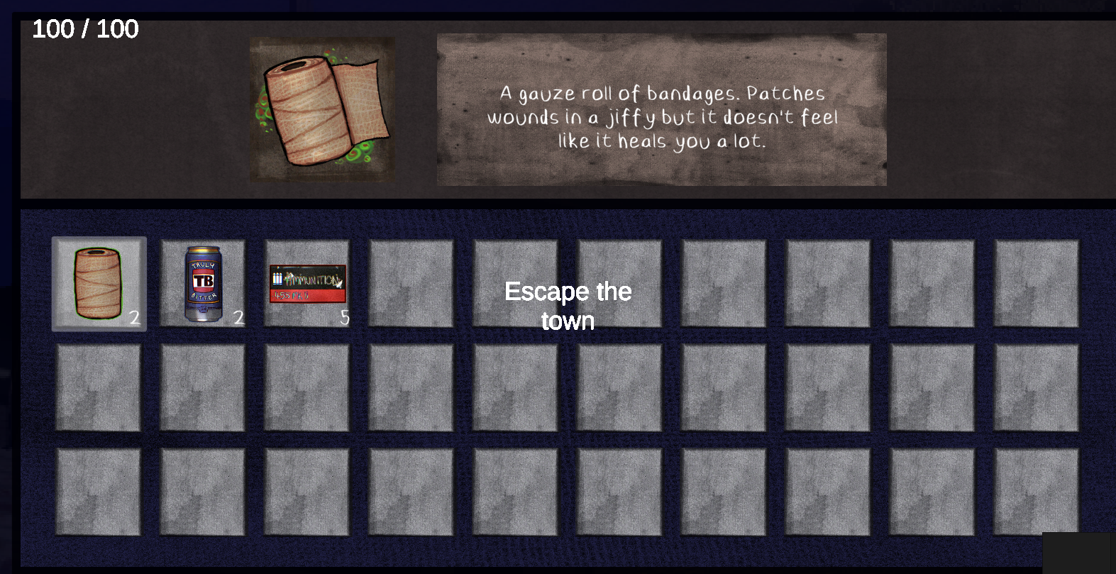 Grace has been working closely with one of our tutors (our saviour, Mel) to get our inventory system up and running! Alongside with the inventory they have also been tinkering away at items that will be used to aid the player with healing. Here are some of their newest item icons!